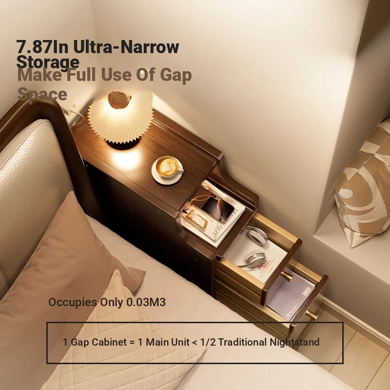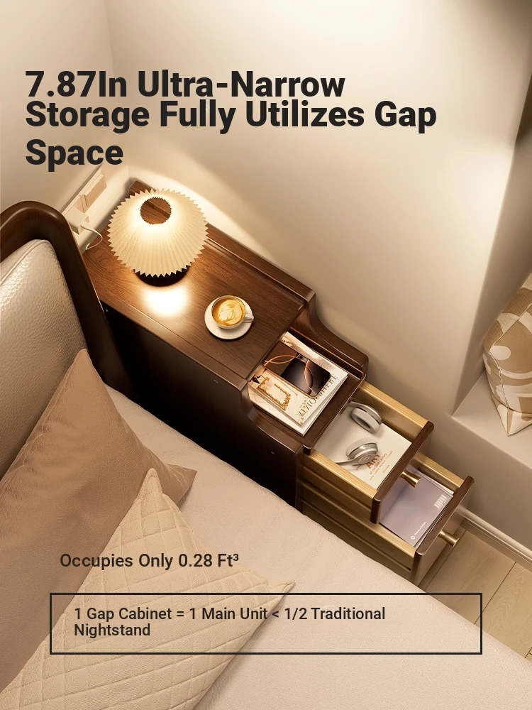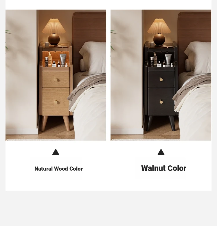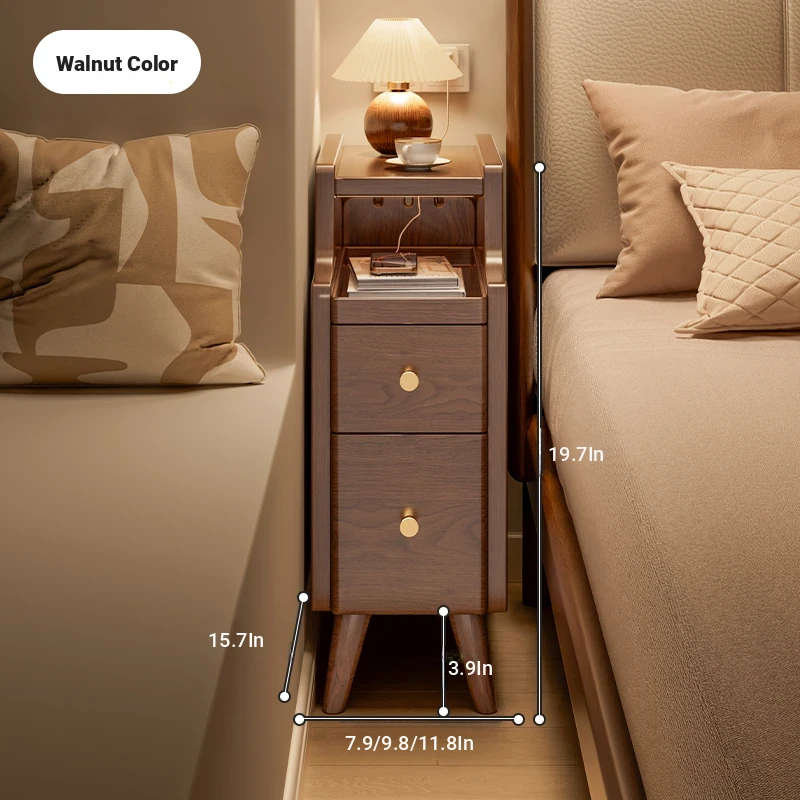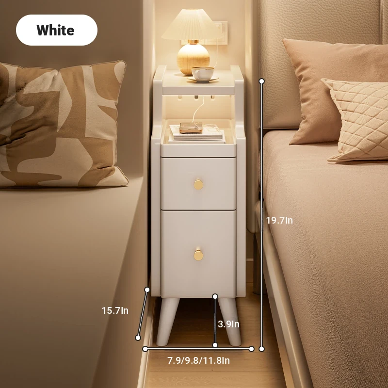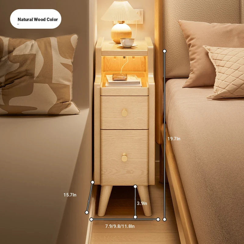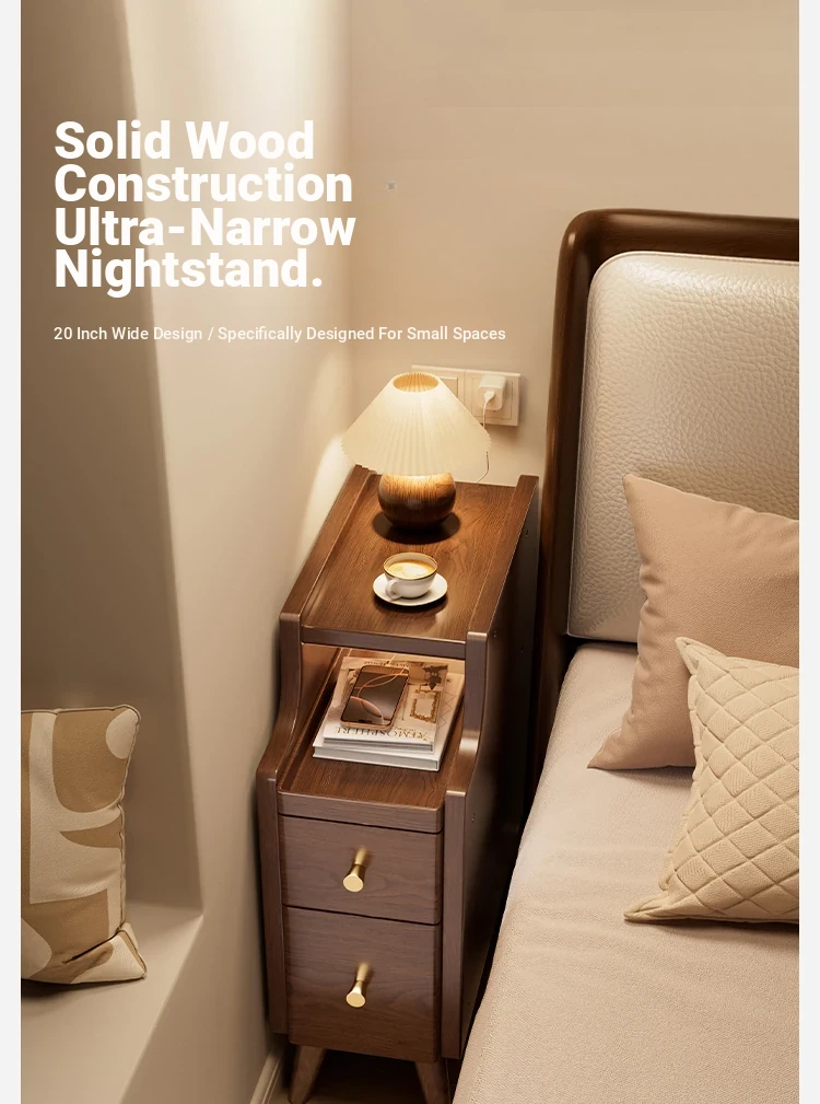 Ultra-Slim Nightstand - 20cm Space-Saving Wooden Storage Cabinet for Home Bedroom, Stylish Narrow Bedside Shelf, Perfect for Small Spaces