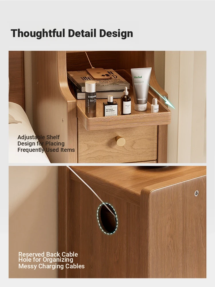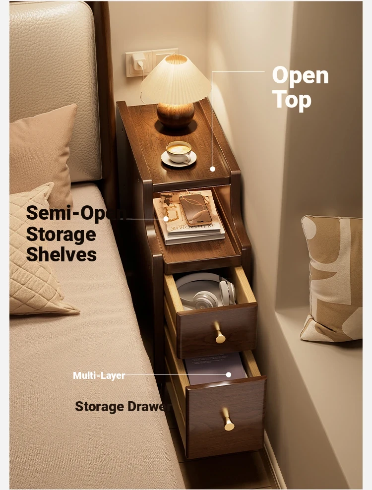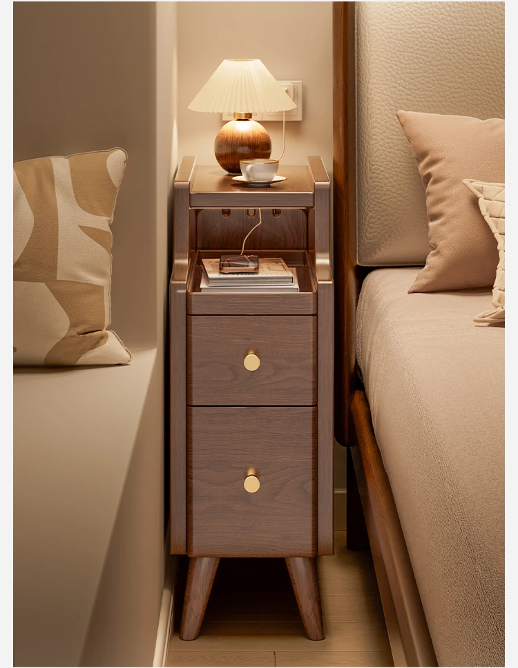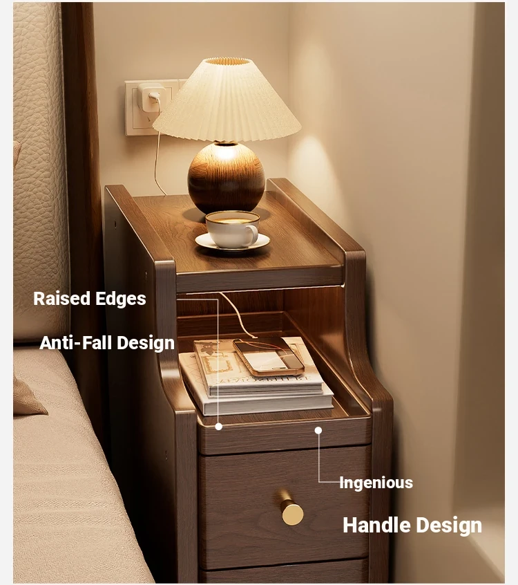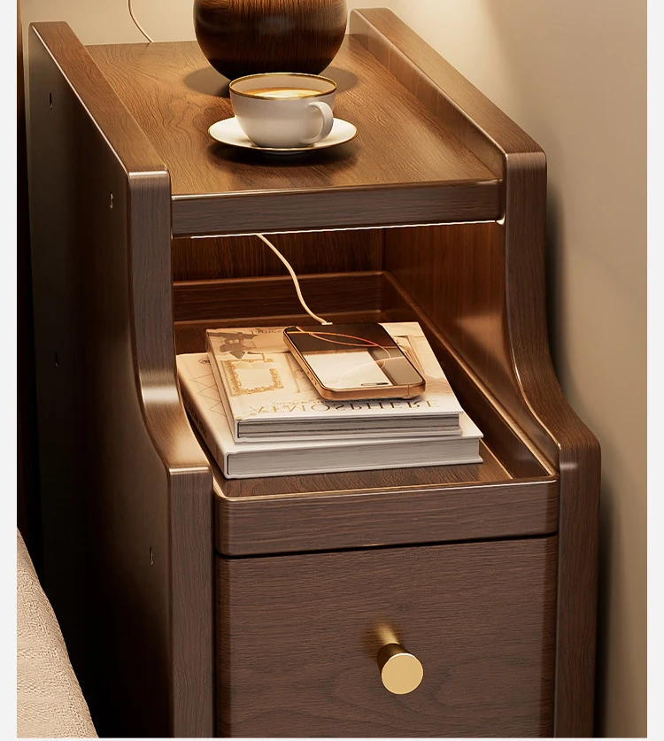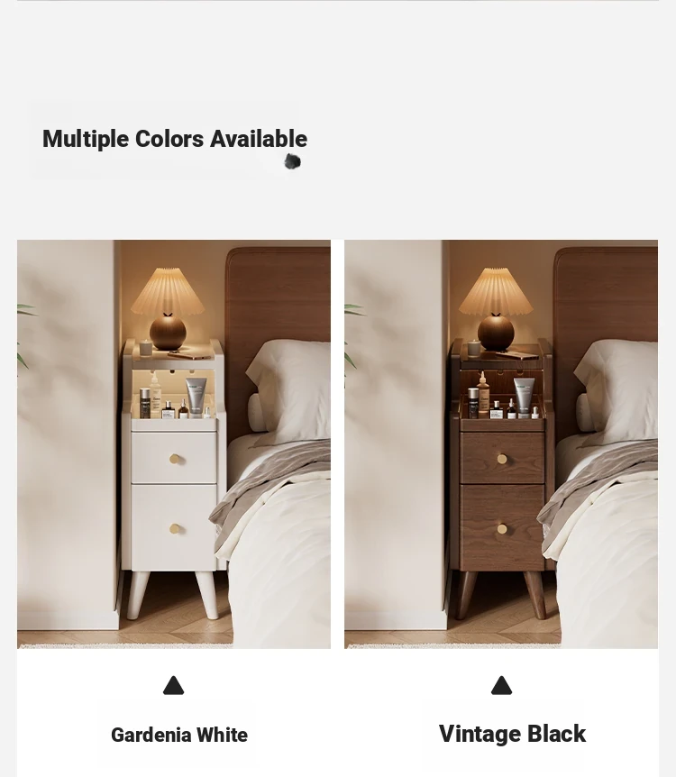 Ultra-Slim Nightstand - 20cm Space-Saving Wooden Storage Cabinet for Home Bedroom, Stylish Narrow Bedside Shelf, Perfect for Small Spaces