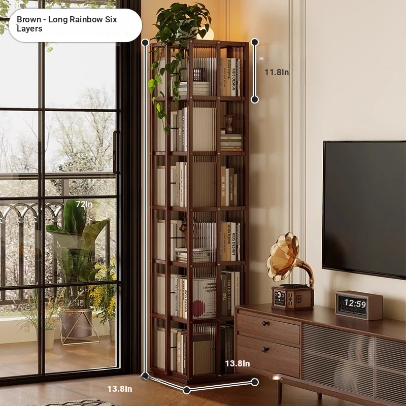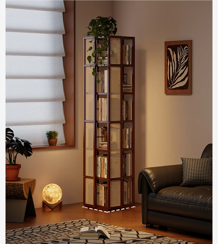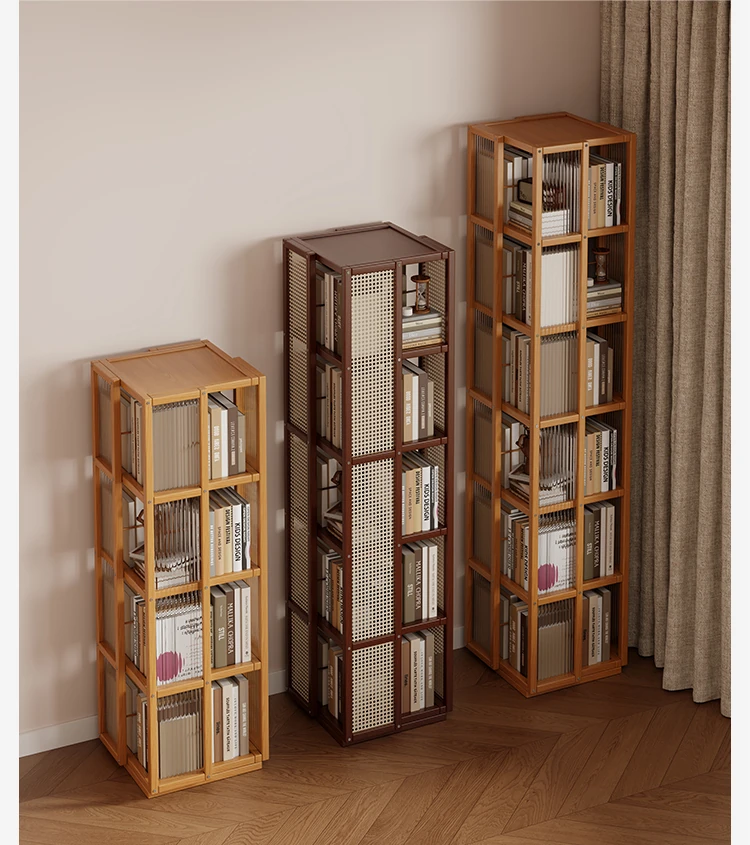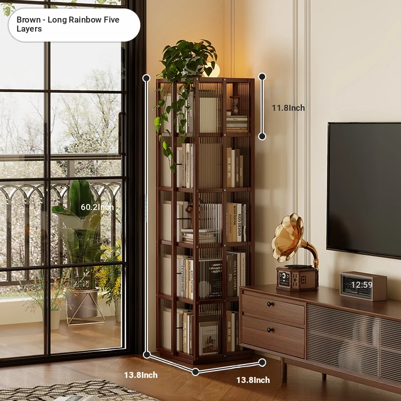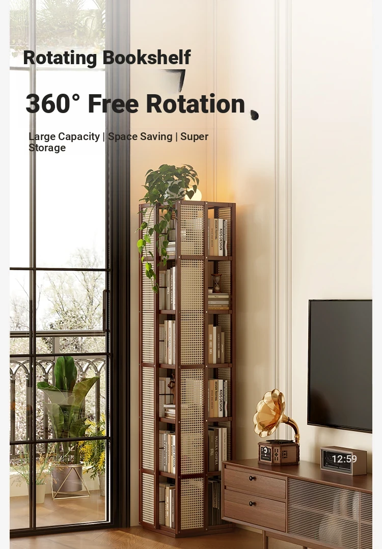Versatile Floor-to-Ceiling Bookshelf with Rotating Storage - Space-Saving Wall-Mounted Unit for Living Room, Ideal Narrow Cabinet for Small Spaces