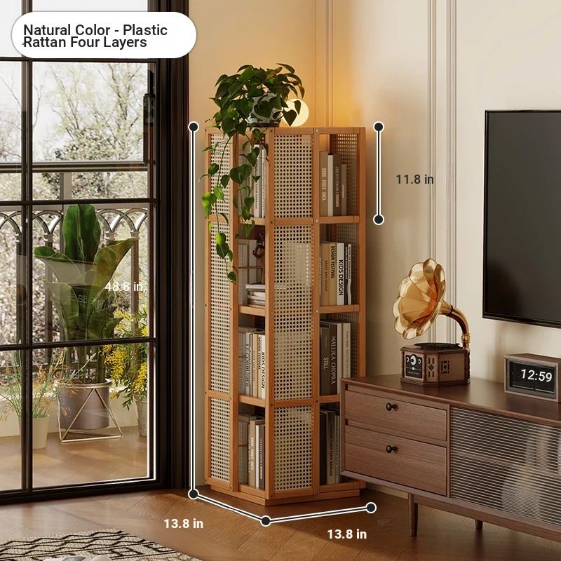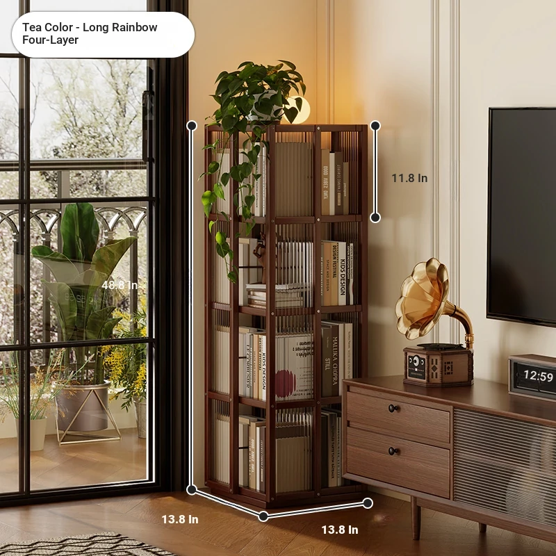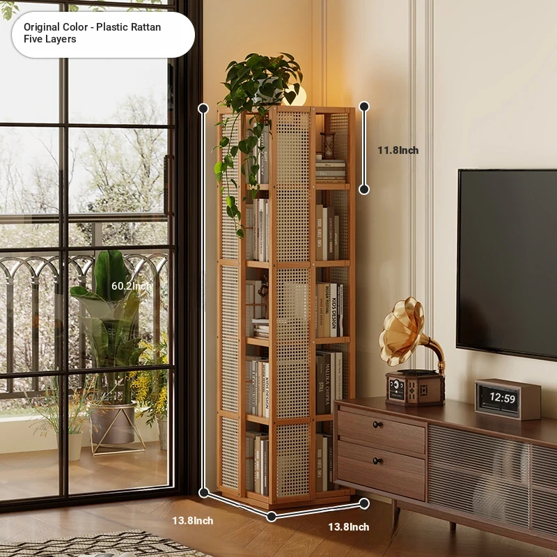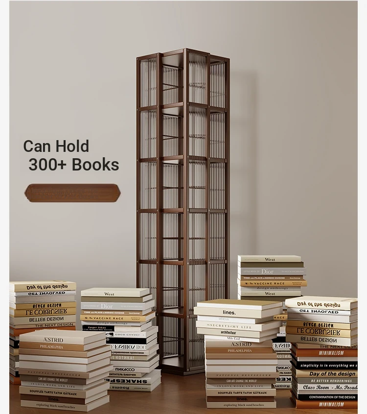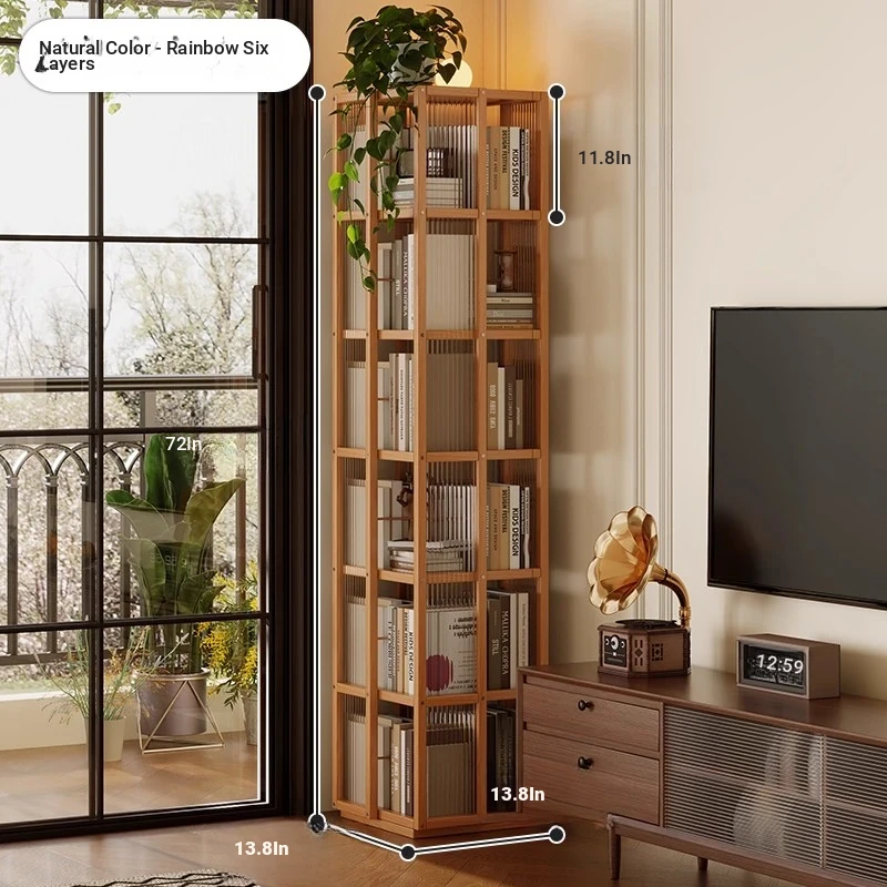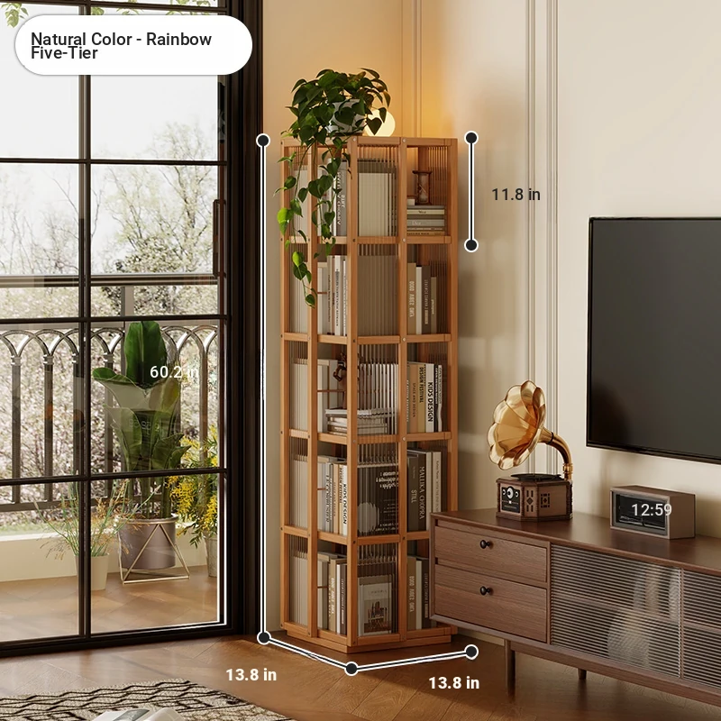 Versatile Floor-to-Ceiling Bookshelf with Rotating Storage - Space-Saving Wall-Mounted Unit for Living Room, Ideal Narrow Cabinet for Small Spaces