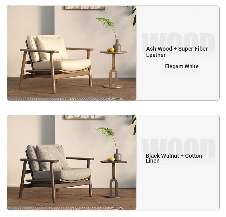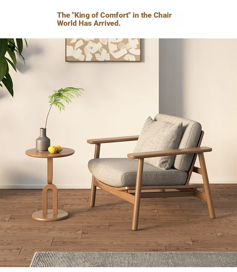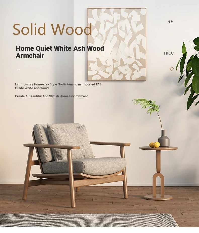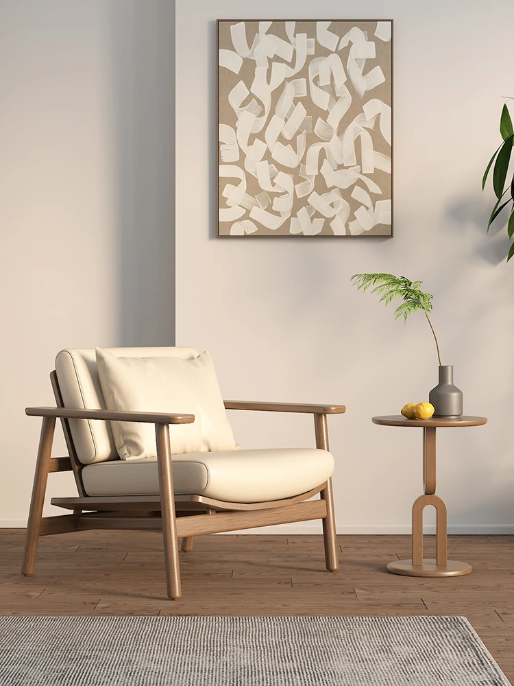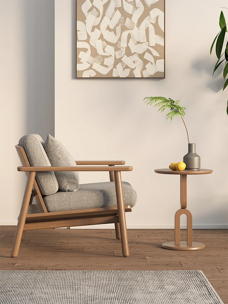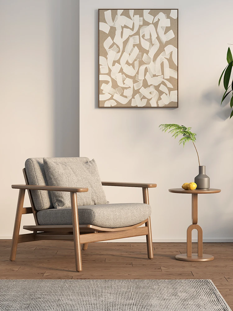 Wabi-Sabi Style Single Sofa Chair - Modern Minimalist Solid Wood Recliner for Living Room, Bedroom, and Balcony - Perfect for Relaxation and Aesthetic Appeal