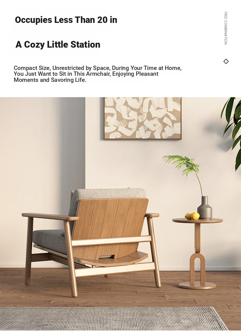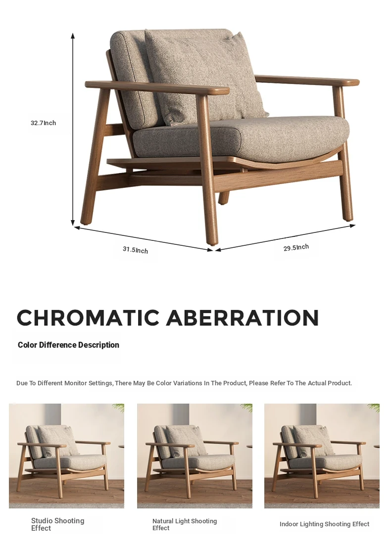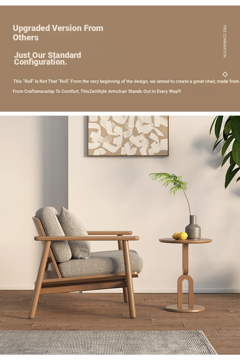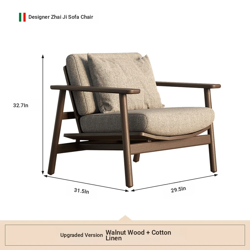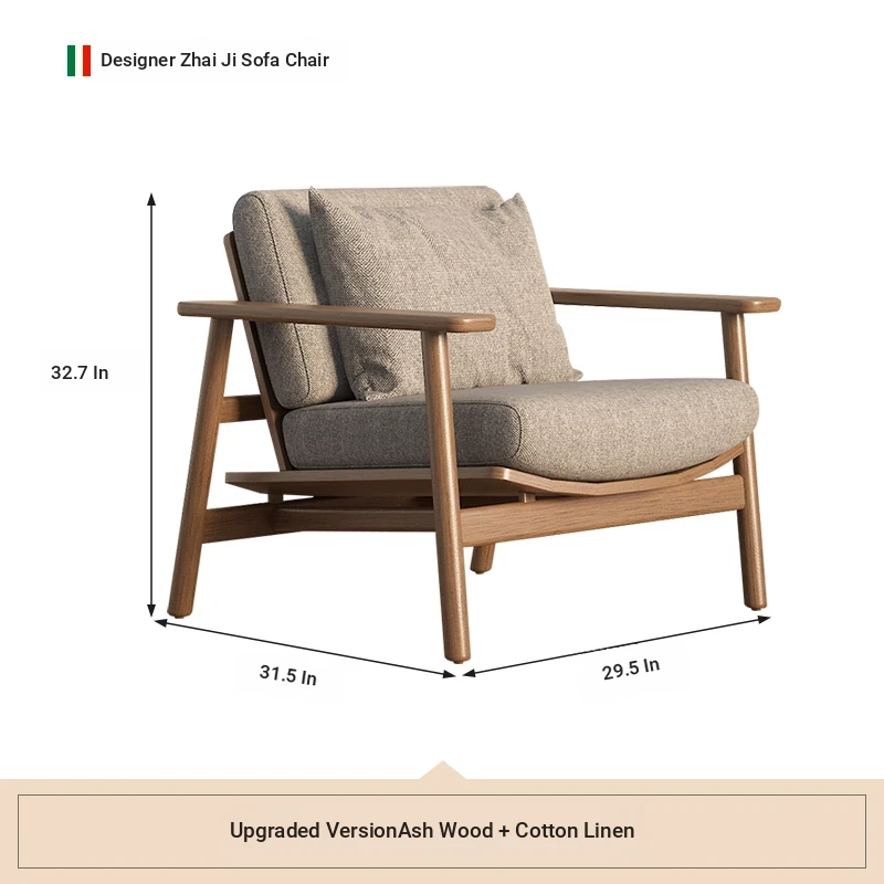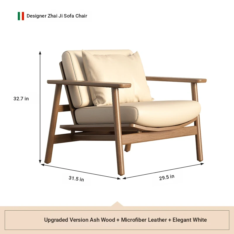 Wabi-Sabi Style Single Sofa Chair - Modern Minimalist Solid Wood Recliner for Living Room, Bedroom, and Balcony - Perfect for Relaxation and Aesthetic Appeal