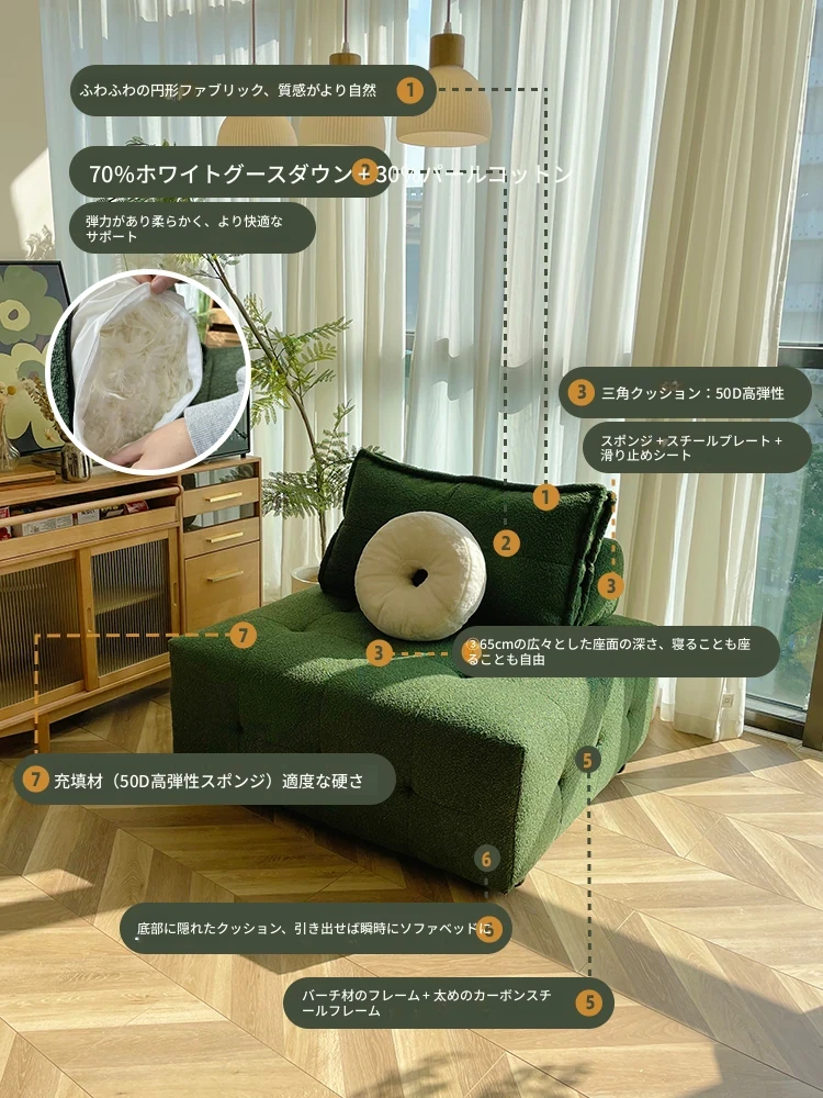 リラックスできる日本式豆袋ソファ - 小スペースに最適な一人用畳スタイルのクッションチェア。バルコニーや寝室にぴったりのクリエイティブなデザインで、くつろぎのひとときをお楽しみください!