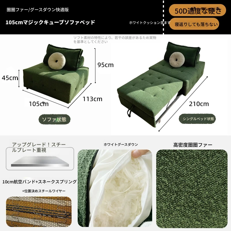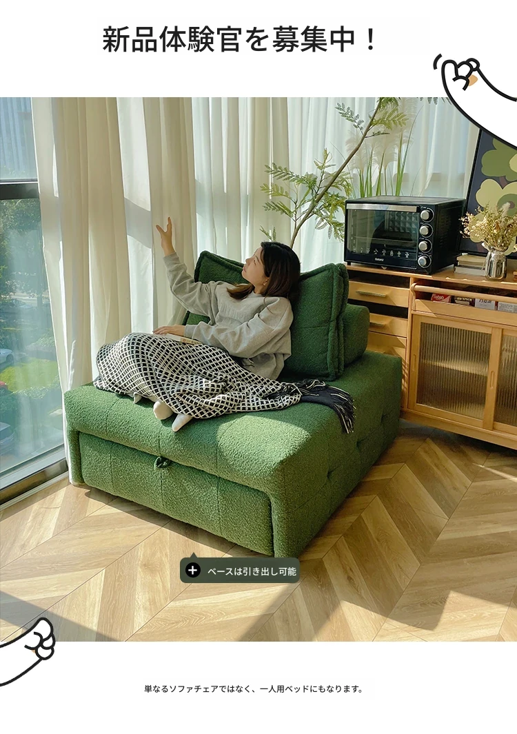 現代的インフルエンサーオフィス向け!コンパクトで経済的なソファ、リラックスできる昼休み用。伸縮可能で小型リビングに最適な一人用・二人用ベッドとしても使える優れもの!