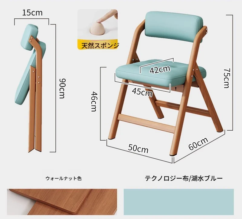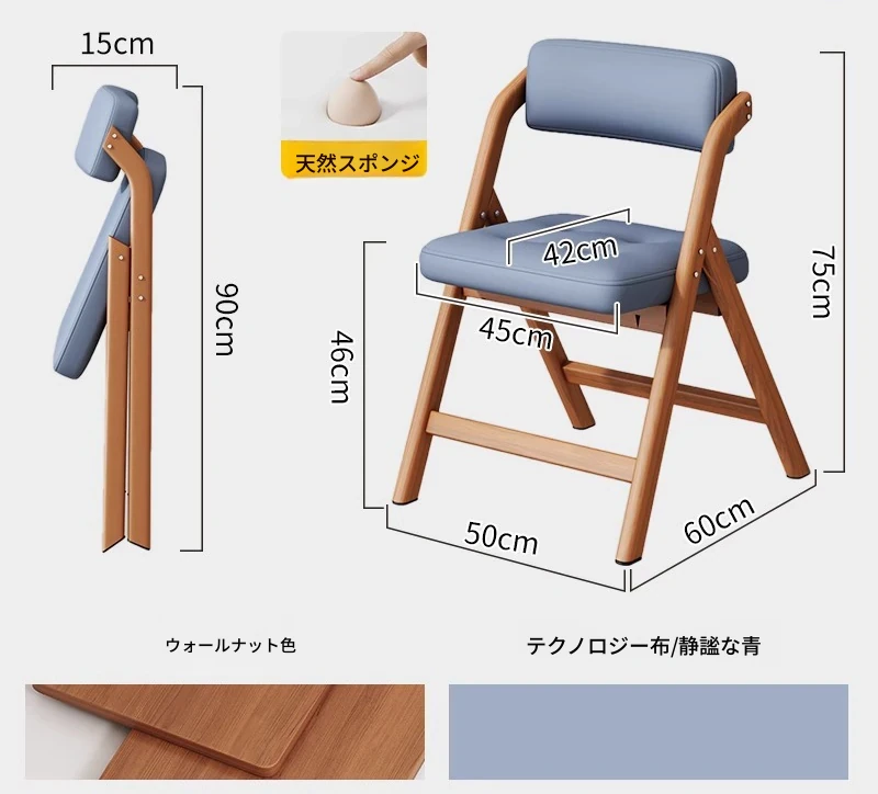 ✨取り付け不要✨天然スポンジ✨静かな青色クッション+ウォールナット色椅子フレーム