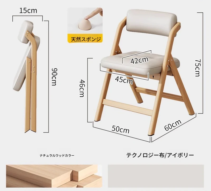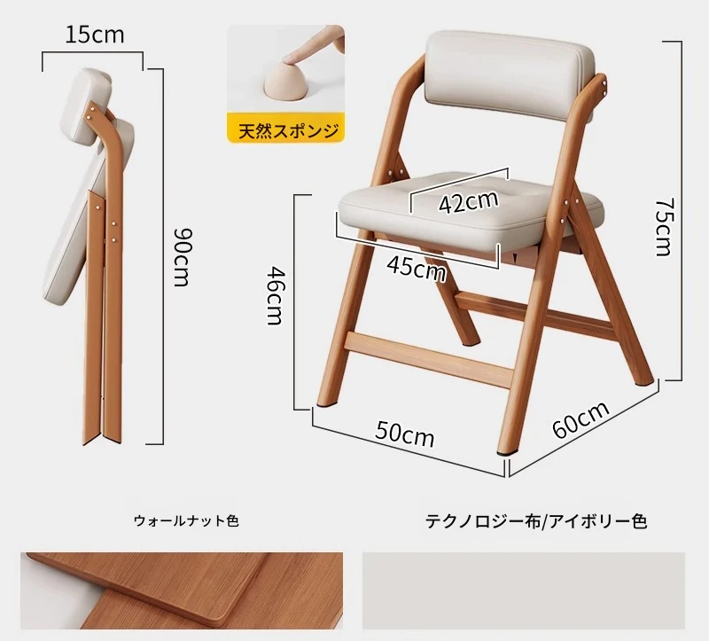 ✨取り付け不要✨天然スポンジ✨アイボリー色クッション+ウォールナット色椅子フレーム