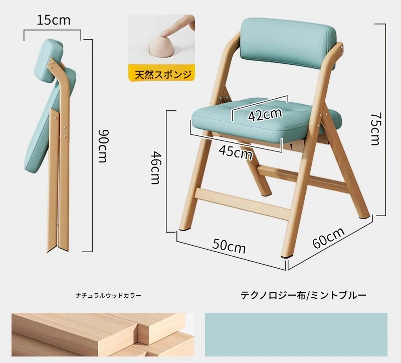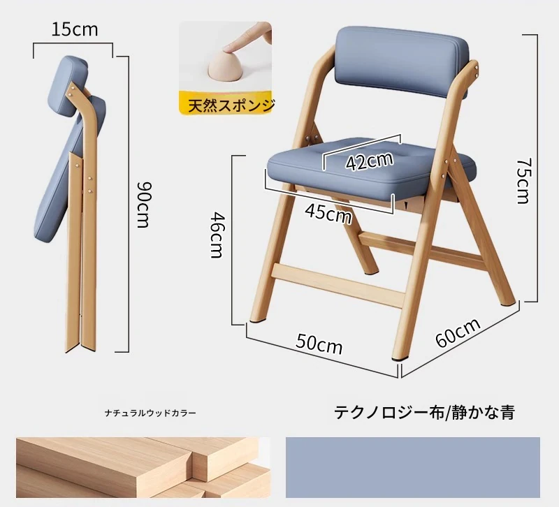 ✨取り付け不要✨天然スポンジ✨静かな青色クッション+ナチュラル色椅子フレーム