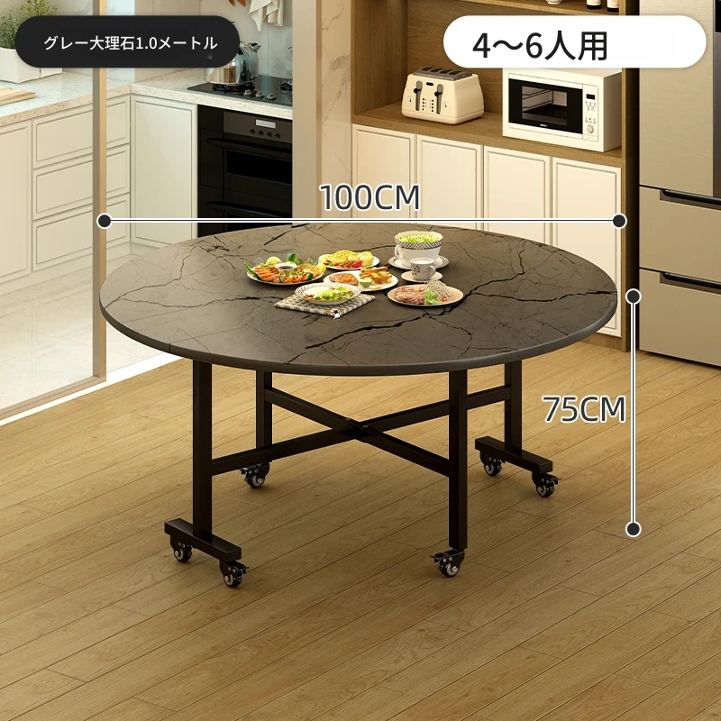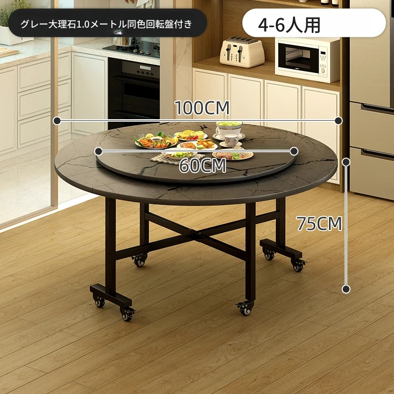 グレー大理石模様-同色天板付きテーブル1.0m【推奨4-6人】【防汚耐磨】【安定して崩れない】