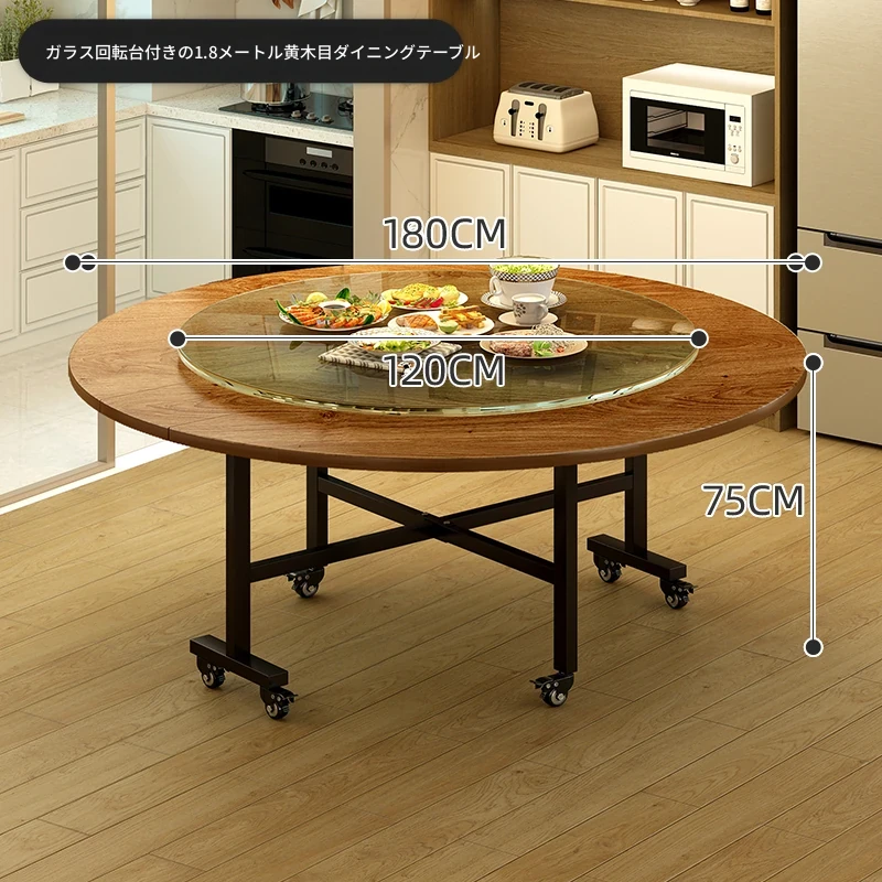 黄木模様-ガラス天板付きテーブル1.8m【推奨13-15人】【防汚耐磨】【安定して崩れない】