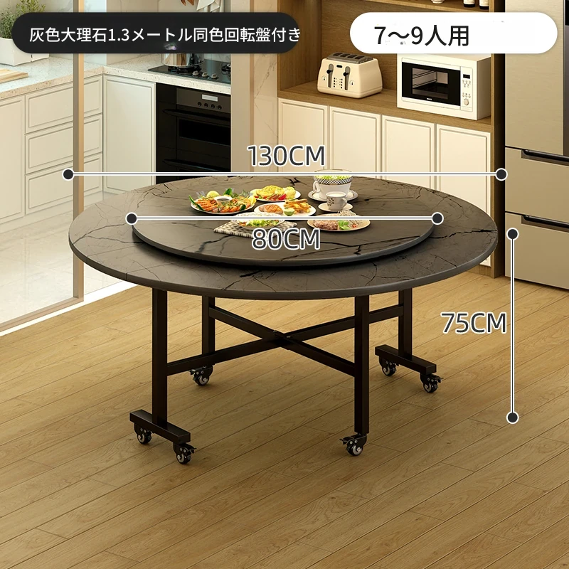 グレー大理石模様-同色天板付きテーブル1.3m【推奨7-9人】【防汚耐磨】【安定して崩れない】
