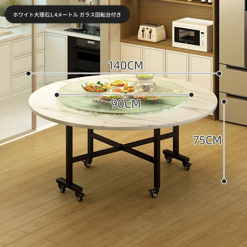 白大理石模様-ガラス天板付きテーブル1.4m【推奨8-10人】【防汚耐磨】【安定して崩れない】