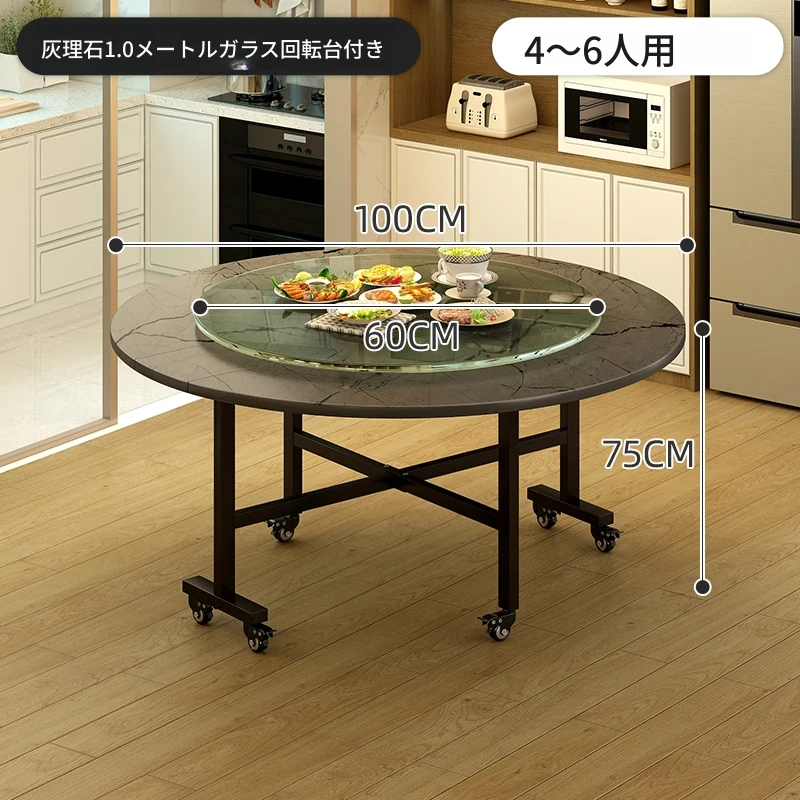 グレー大理石模様-ガラス天板付きテーブル1.0m【推奨4-6人】【防汚耐磨】【安定して崩れない】