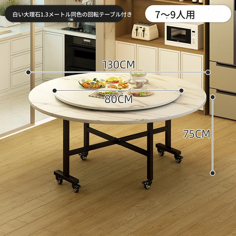 白大理石模様-ガラス天板付きテーブル1.3m【推奨7-9人】【防汚耐磨】【安定して崩れない】