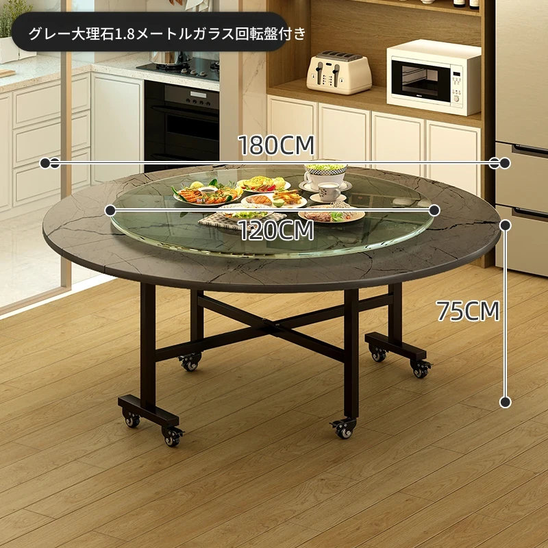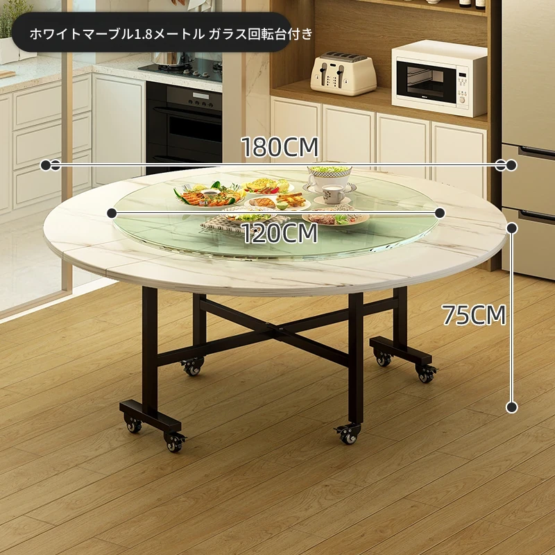白大理石模様-ガラス天板付きテーブル1.8m【推奨13-15人】【防汚耐磨】【安定して崩れない】
