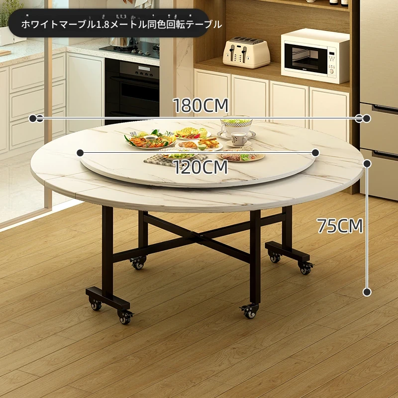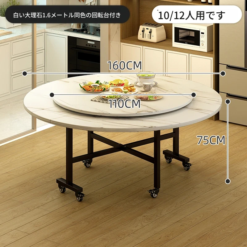 ⭐メイン画像⭐白大理石模様-同色天板付きテーブル1.6m【推奨10-12人】【防汚耐磨】【安定して崩れない】