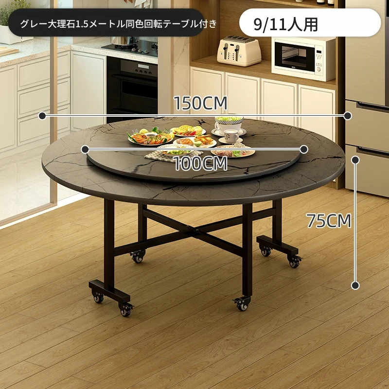 グレー大理石模様-同色天板付きテーブル1.5m【推奨9-11人】【防汚耐磨】【安定して崩れない】