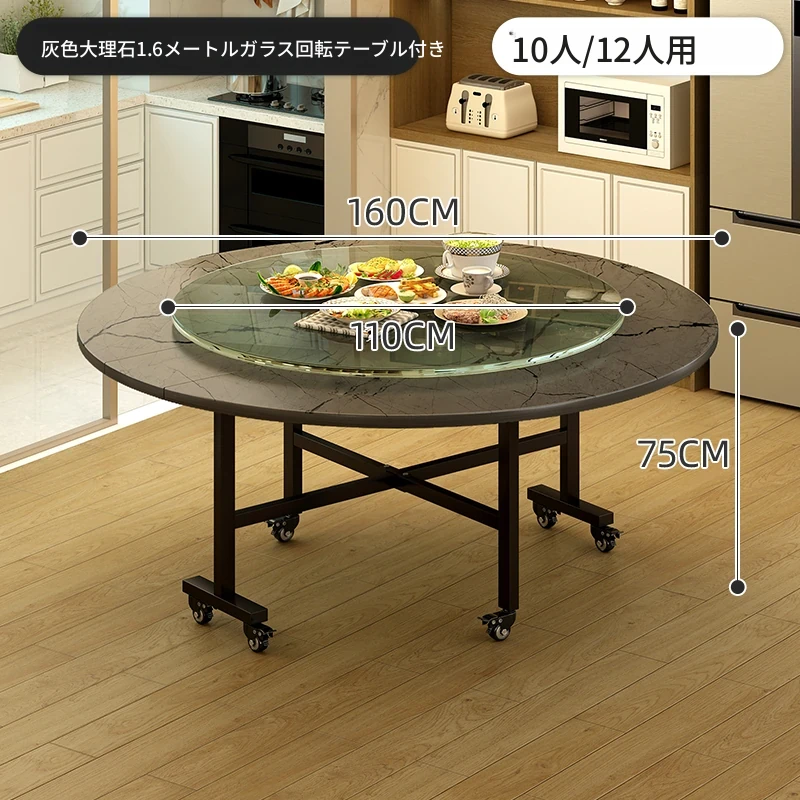 グレー大理石模様-ガラス天板付きテーブル1.6m【推奨10-12人】【防汚耐磨】【安定して崩れない】