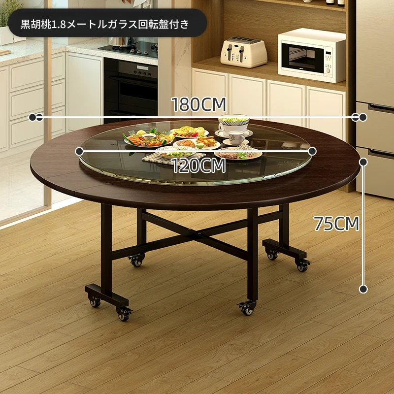 黒胡桃模様-ガラス天板付きテーブル1.8m【推奨13-15人】【防汚耐磨】【安定して崩れない】