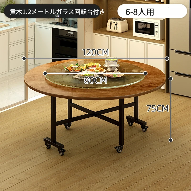 黄木模様-ガラス天板付きテーブル1.2m【推奨6-8人】【防汚耐磨】【安定して崩れない】