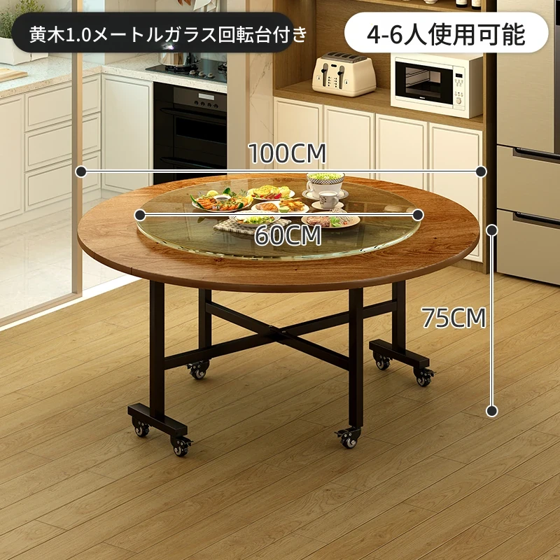 黄木模様-ガラス天板付きテーブル1.0m【推奨4-6人】【防汚耐磨】【安定して崩れない】