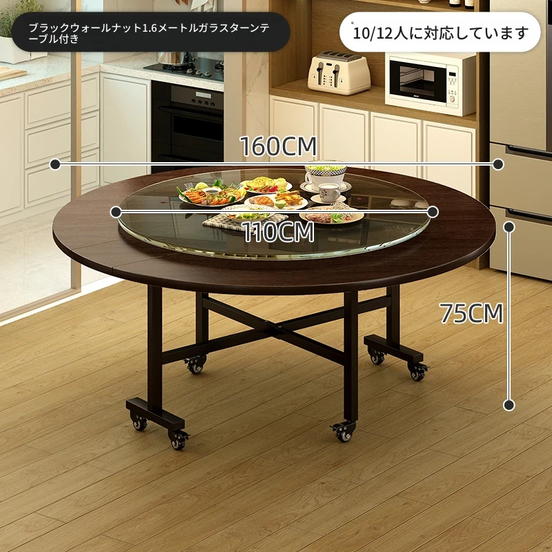 黒胡桃模様-ガラス天板付きテーブル1.6m【推奨10-12人】【防汚耐磨】【安定して崩れない】