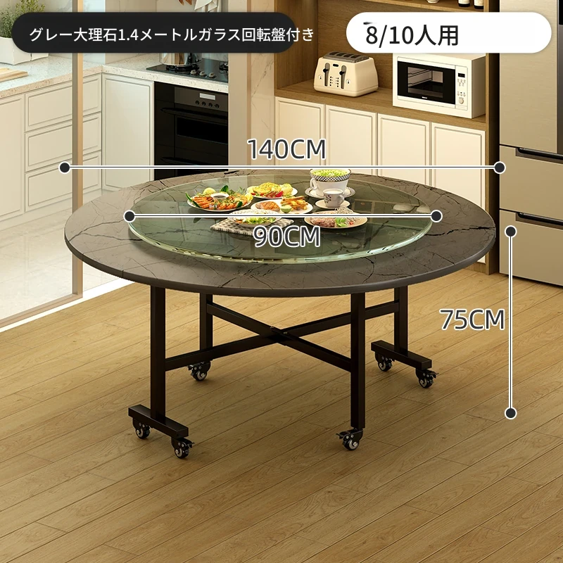 灰理石纹-ガラステーブル1.4メートル【推奨8-10人】【防汚耐磨】【安定して崩れない】