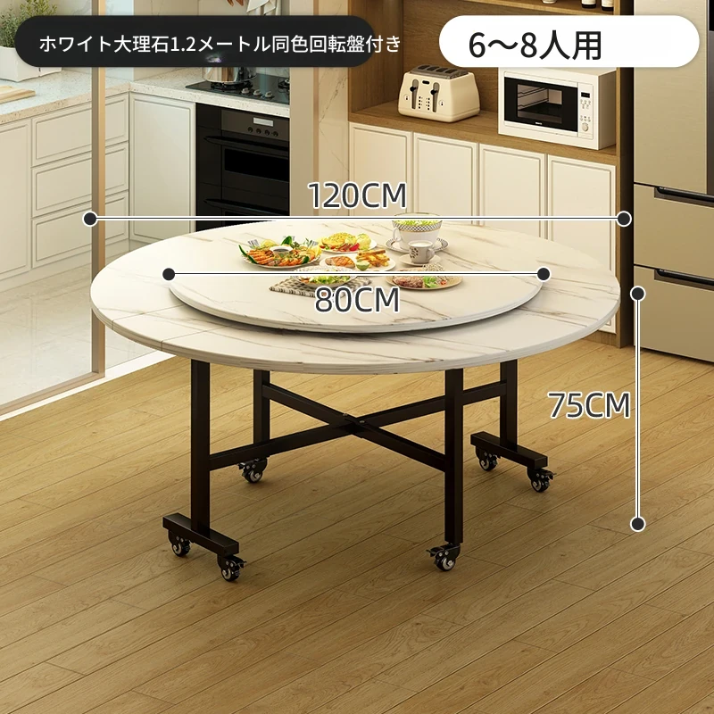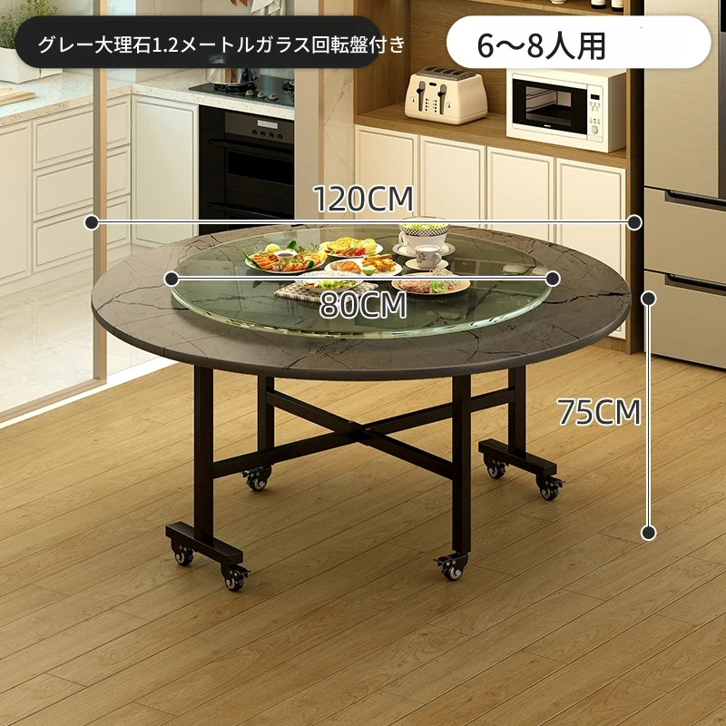 白理石纹-ガラステーブル1.2メートル【推奨6-8人】【防汚耐磨】【安定して崩れない】