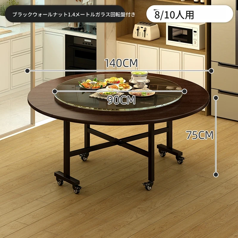 黒胡桃纹-ガラステーブル1.4メートル【推奨8-10人】【防汚耐磨】【安定して崩れない】