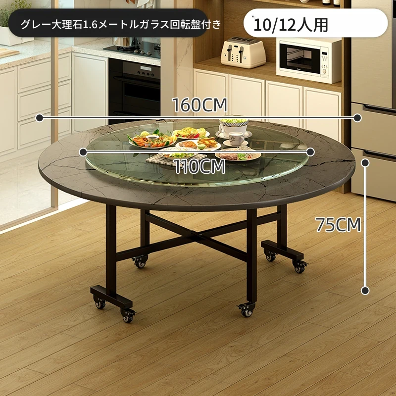 灰理石纹-ガラステーブル1.6メートル【推奨10-12人】【防汚耐磨】【安定して崩れない】