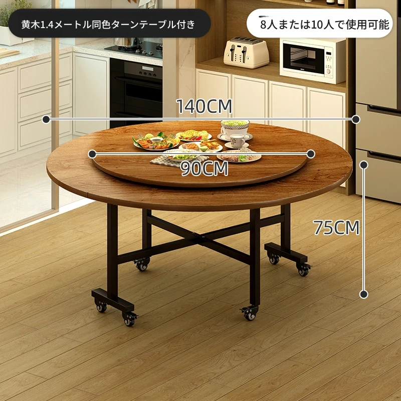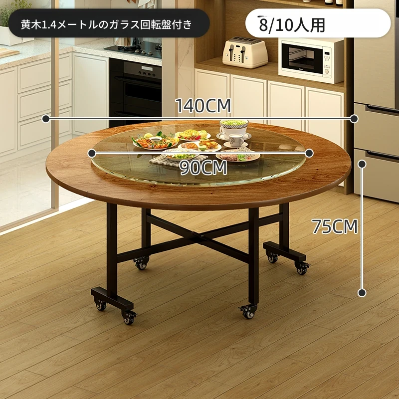 黄木纹-ガラステーブル1.4メートル【推奨8-10人】【防汚耐磨】【安定して崩れない】