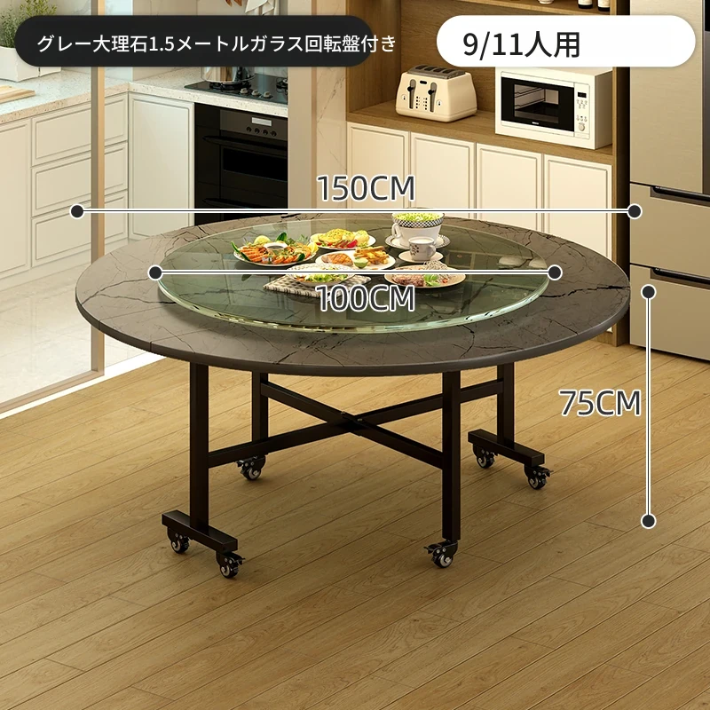 灰理石纹-ガラステーブル1.5メートル【推奨9-11人】【防汚耐磨】【安定して崩れない】