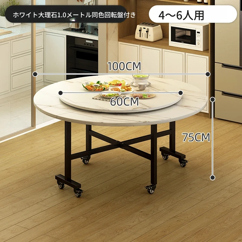 白理石纹-ガラステーブル1.0メートル【推奨4-6人】【防汚耐磨】【安定して崩れない】