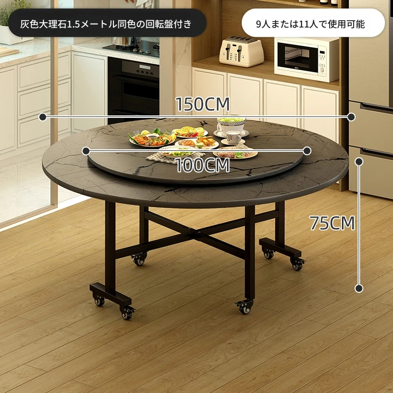 灰理石纹-同色天板1.5メートル【推奨9-11人】【防汚耐磨】【安定して崩れない】