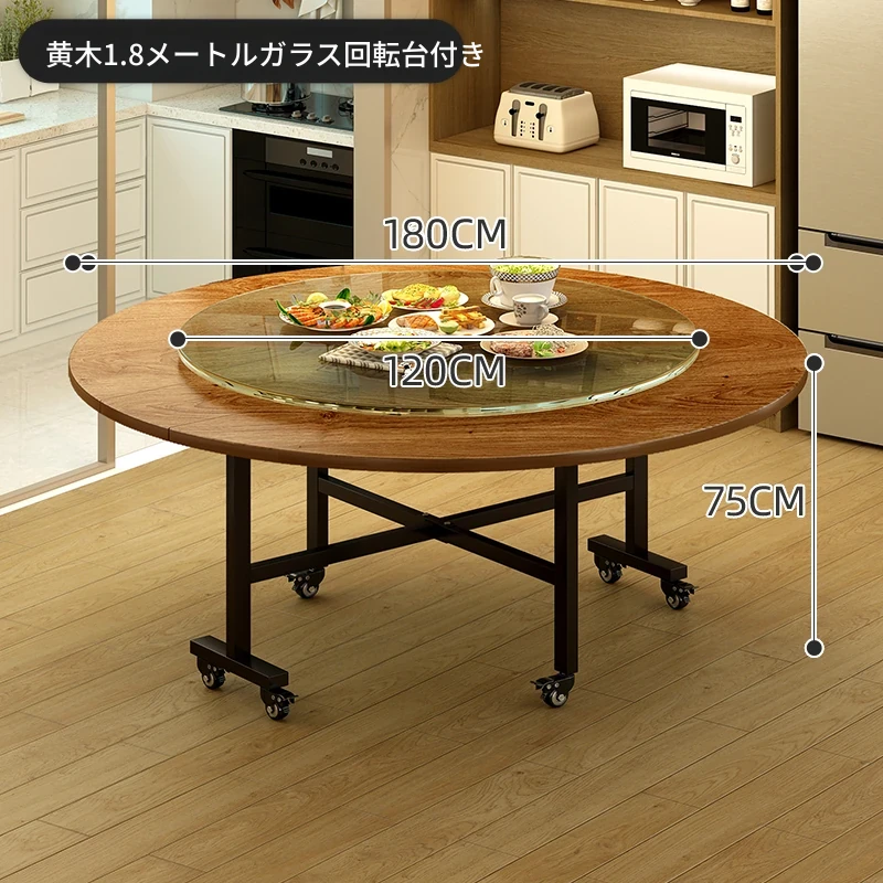 黄木纹-ガラステーブル1.8メートル【推奨13-15人】【防汚耐磨】【安定して崩れない】