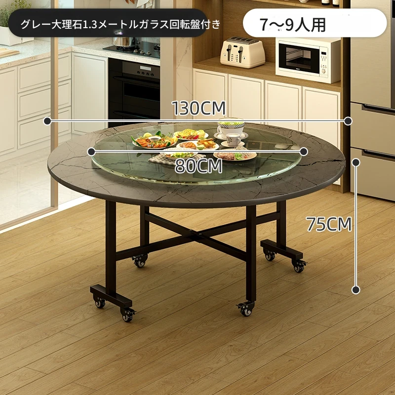 灰理石纹-ガラステーブル1.3メートル【推奨7-9人】【防汚耐磨】【安定して崩れない】
