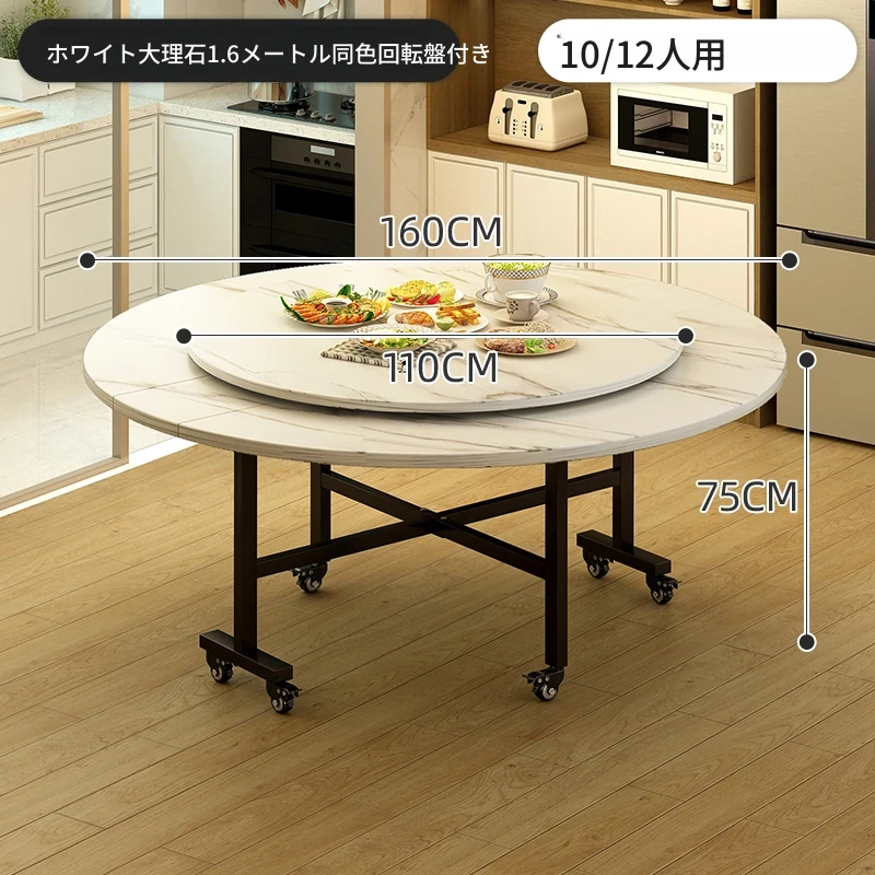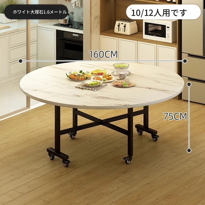 ⭐メイン画像モデル⭐白理石纹-同色天板1.6メートル【推奨10-12人】【防汚耐磨】【安定して崩れない】