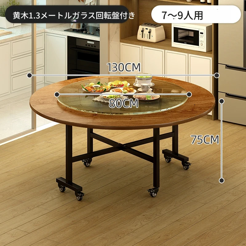 黄木纹-ガラステーブル1.3メートル【推奨7-9人】【防汚耐磨】【安定して崩れない】