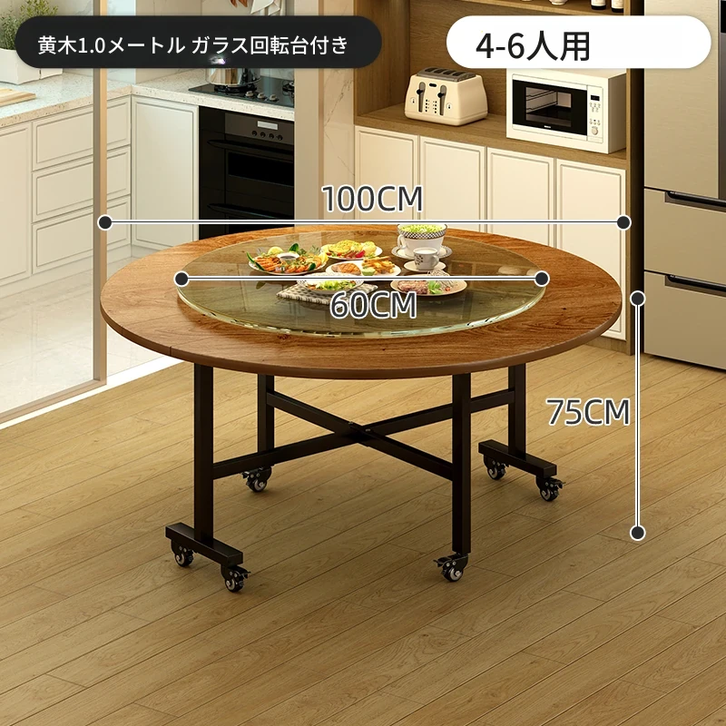 黄木纹-ガラステーブル1.0メートル【推奨4-6人】【防汚耐磨】【安定して崩れない】