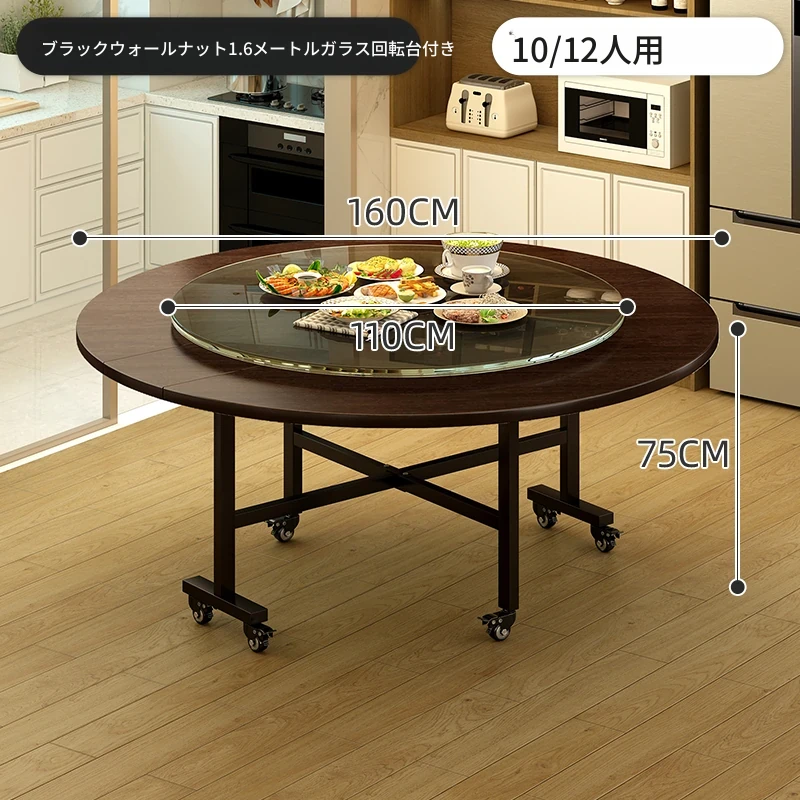 黒胡桃纹-ガラステーブル1.6メートル【推奨10-12人】【防汚耐磨】【安定して崩れない】