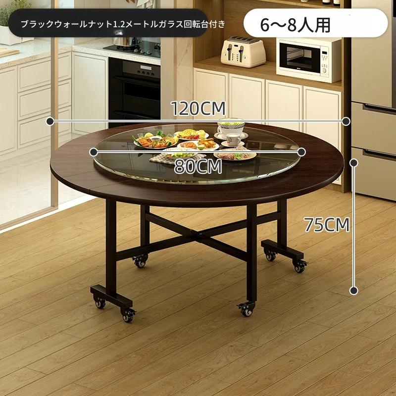 黒胡桃纹-ガラステーブル1.2メートル【推奨6-8人】【防汚耐磨】【安定して崩れない】
