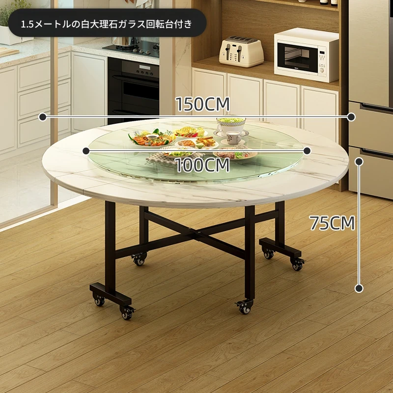 白理石纹-ガラステーブル1.5メートル【推奨9-11人】【防汚耐磨】【安定して崩れない】