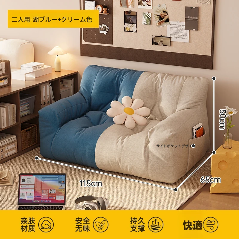 ダブルタイプ❎大サイズ--湖ブルー+アイボリー【快適な包み込み 長時間座ってもへたらない】