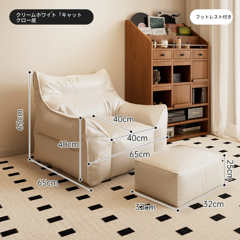 猫爪皮-クリームホワイト+フットレスト【環境保護ESP粒子 長時間座っても快適】