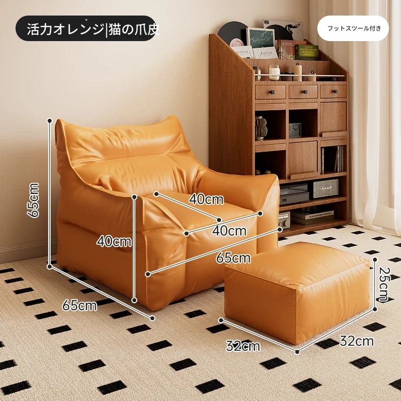 猫爪皮-ビビッドオレンジ+フットレスト【環境保護ESP粒子 長時間座っても快適】