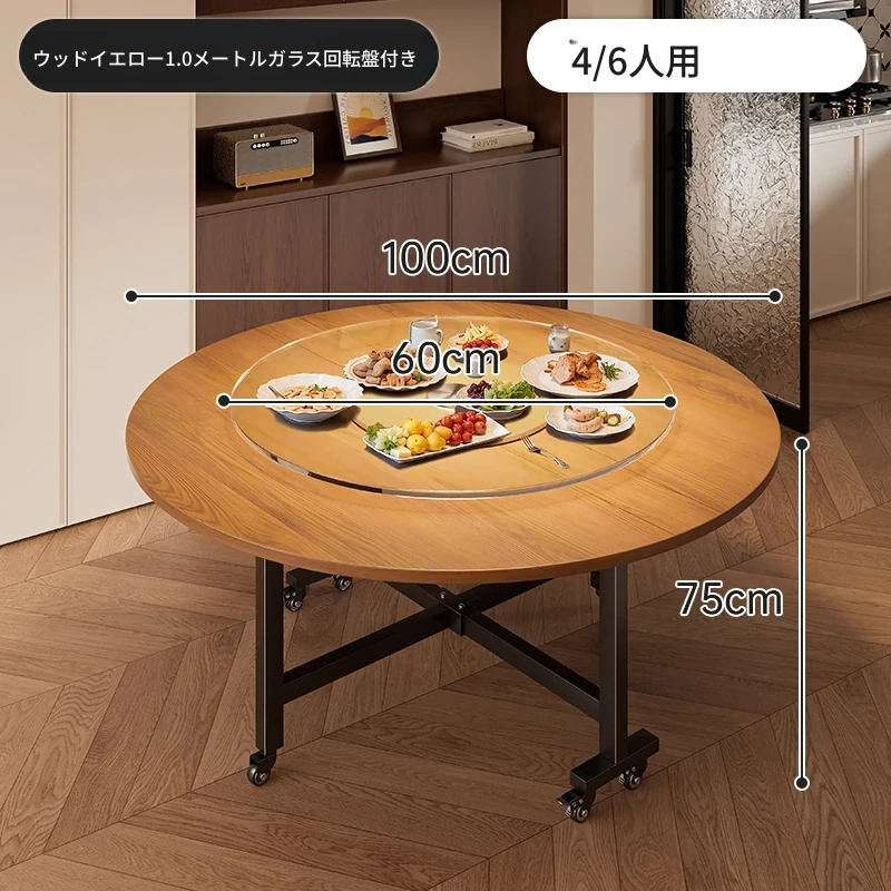 イエローペア模様-ガラス天板付き1.0メートル【推奨4-6人】【防汚耐摩】【安定して崩れない】