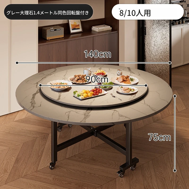 グレー大理石模様-単体テーブル1.4メートル【推奨8-10人】【防汚耐摩】【安定して崩れない】