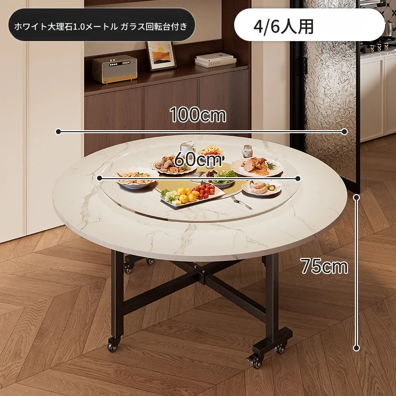 ホワイト大理石模様-ガラス天板付き1.0メートル【推奨4-6人】【防汚耐摩】【安定して崩れない】