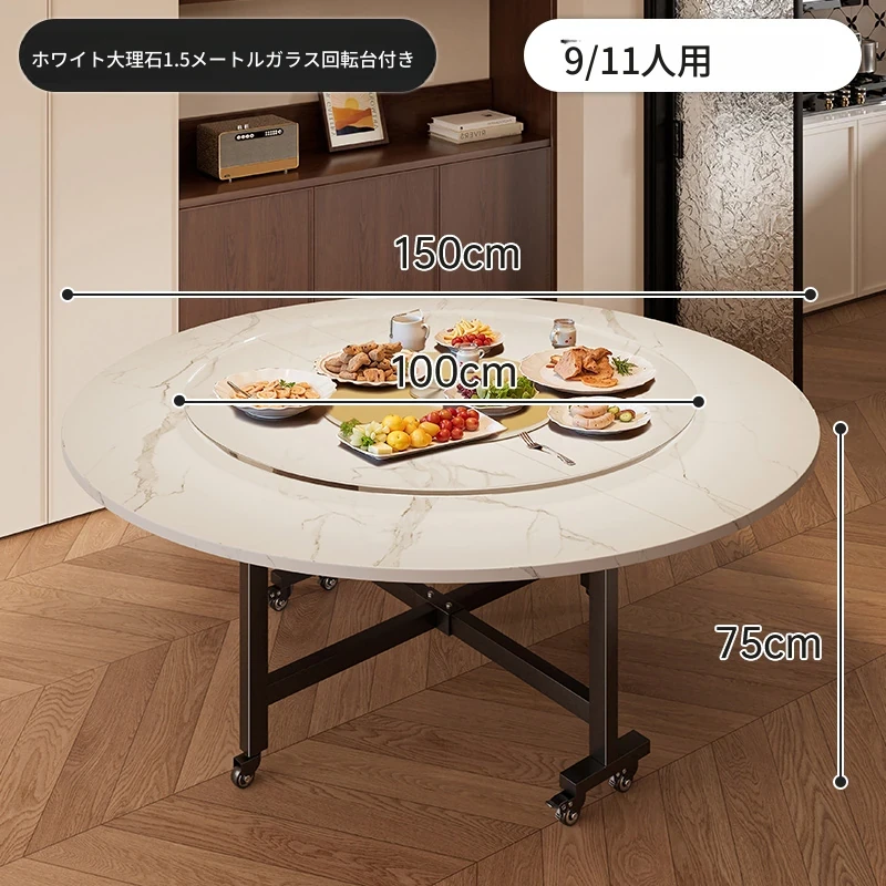 ホワイト大理石模様-ガラス天板付き1.5メートル【推奨9-11人】【防汚耐摩】【安定して崩れない】