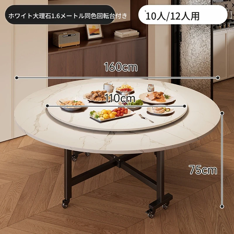 ⭐ベストセラー⭐ホワイト大理石模様-同色天板付き1.6メートル【推奨10-12人】【防汚耐摩】【安定して崩れない】