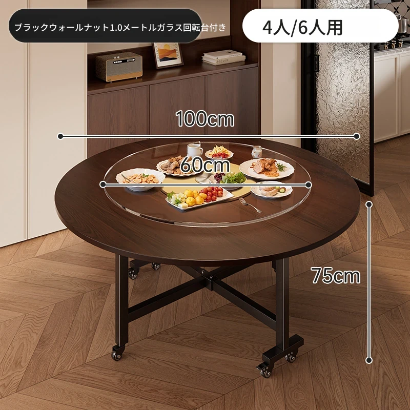 ウォールナット模様-ガラス天板付き1.0メートル【推奨4-6人】【防汚耐摩】【安定して崩れない】